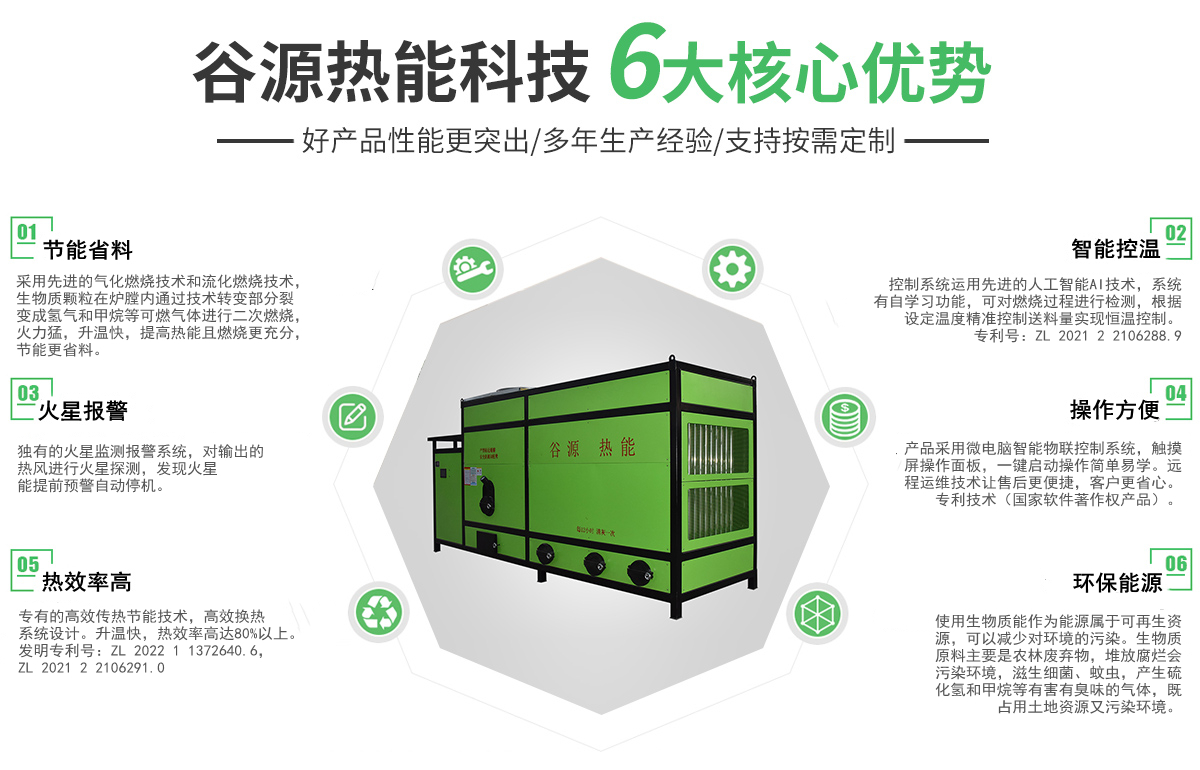 安徽谷源熱能科技有限公司坐落于大別山腳下的紅色革命老區(qū)——六安,是一家專業(yè)從事熱源產(chǎn)品的研發(fā)、生產(chǎn)、銷(xiāo)售、服務(wù)于一體的綜合性企業(yè)。 本公司主要生產(chǎn):糧食烘干用生物質(zhì)環(huán)保熱風(fēng)爐、生物質(zhì)稻殼熱風(fēng)爐、生物質(zhì)顆粒取暖爐、浴室用生物質(zhì)顆粒爐、涂裝生產(chǎn)線用生物質(zhì)顆粒爐、燃油熱風(fēng)爐、天然氣熱風(fēng)爐等熱源產(chǎn)品,公司產(chǎn)品采用微電腦控制,可自動(dòng)點(diǎn)火,根據(jù)設(shè)定溫度自動(dòng)進(jìn)料、自動(dòng)控溫。使用燃料為生物質(zhì)顆粒,屬于可再生資源,相對(duì)運(yùn)行成本低,節(jié)能環(huán)保。 我們以顧客為導(dǎo)向,一直致力于以提高產(chǎn)品質(zhì)量、降低客戶使用成本、節(jié)能環(huán)保為研發(fā)目標(biāo),不斷創(chuàng)新。 公司秉承“用心服務(wù),客戶至上;質(zhì)量為本,精益求精!”的經(jīng)營(yíng)理念,以“節(jié)能環(huán)保”為使命,以“綠色燃料”為保障,以“先進(jìn)燃燒技術(shù)”為支撐,繼續(xù)推進(jìn)節(jié)能環(huán)保事業(yè)不斷向前發(fā)展。為改善能源結(jié)構(gòu),打造低碳城市,創(chuàng)建環(huán)境美好資源節(jié)能型社會(huì),做出不懈努力。我們?cè)敢馀c您真誠(chéng)合作、共創(chuàng)雙贏,讓我們攜手共創(chuàng)輝煌的明天。竭誠(chéng)歡迎各界朋友光臨惠顧!